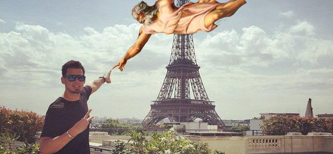 As InTheMix notes, the story actually begins back in April, when Afrojack’s fellow Dutchman Sid Frisjes was a little unsatisfied with his vacation photos and asked users on 4Chan to Photoshop a snap of him standing next to the Eiffel Tower.