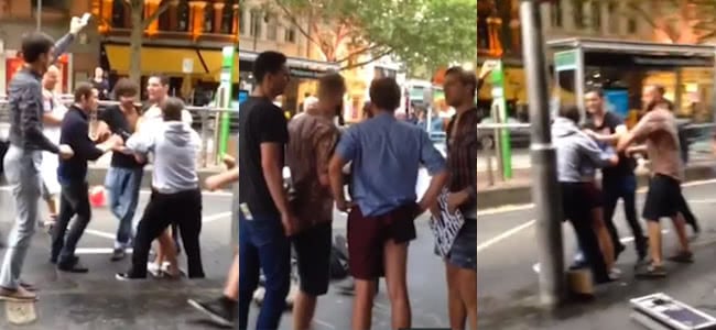 Footage of the incident depicts three men seemingly antagonising protestors, with one shouting in support of the developers and claiming the issue is one of “public housing”, before the fight spills out into Bourke St, with protestors yelling at the men to get out of the road.