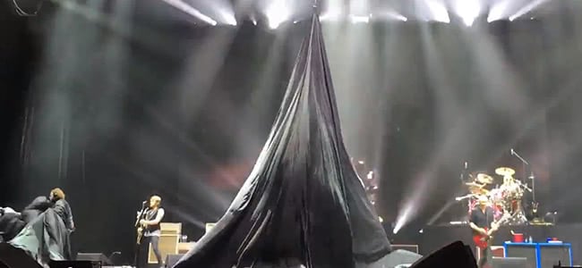 Foo Fighters experienced a similarly haphazard situation during a recent gig in Amsterdam. As Loudwire reports, the opening of the band’s set was halted by a giant curtain that wouldn’t fall correctly.